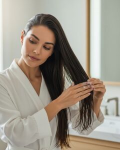 L’eau trop chaude stimule les glandes sébacées. Privilégiez une température tiède, et terminez par un rinçage à l’eau froide pour resserrer les écailles.